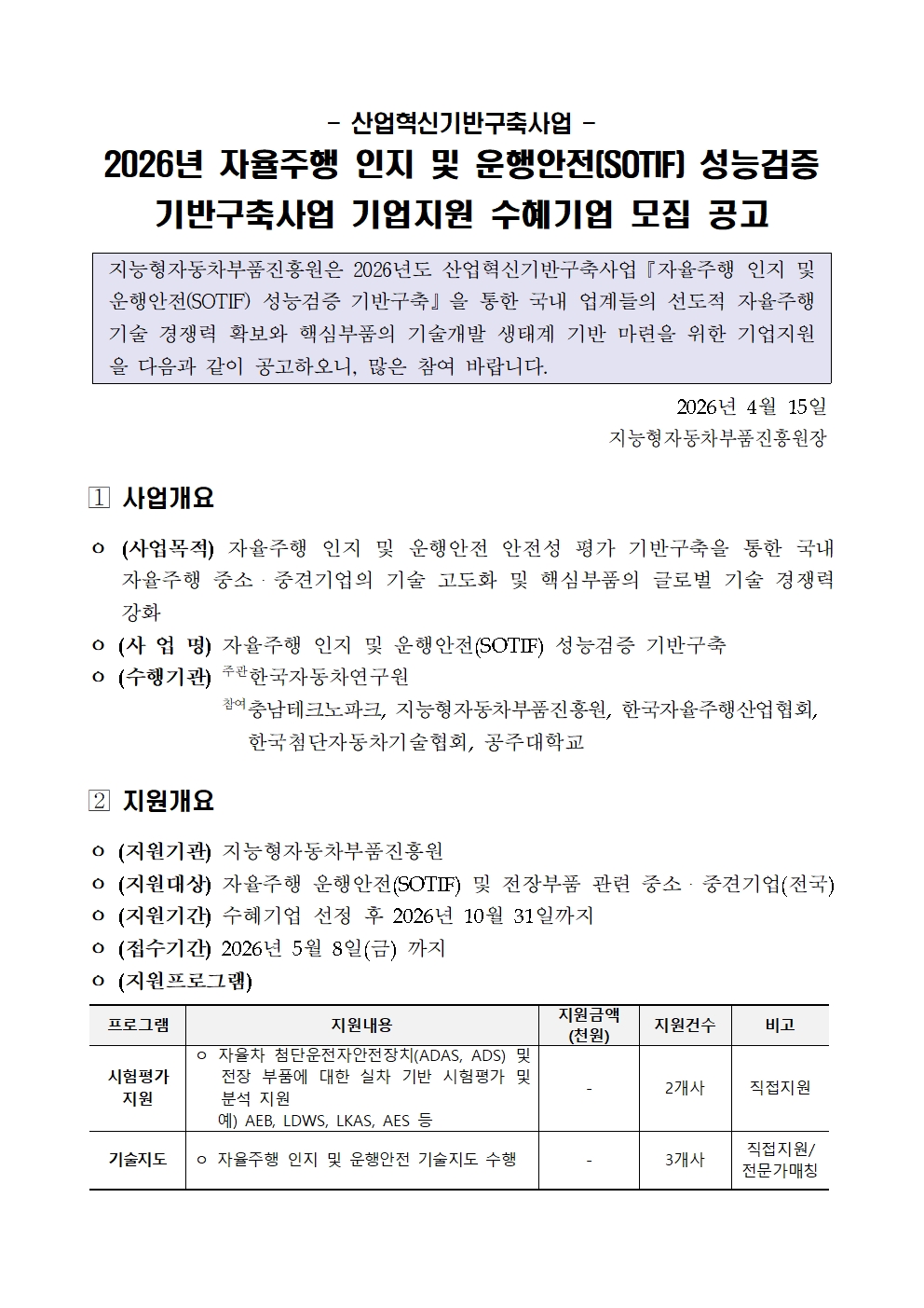[공고]시험평가본부-2828 SOTIF 수혜기업 모집공고
