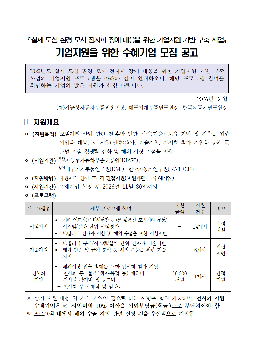 [공고] 2026년 전자파 시험센터 기업지원을 위한 수혜기업 모집 연장 공고(~5/22)
