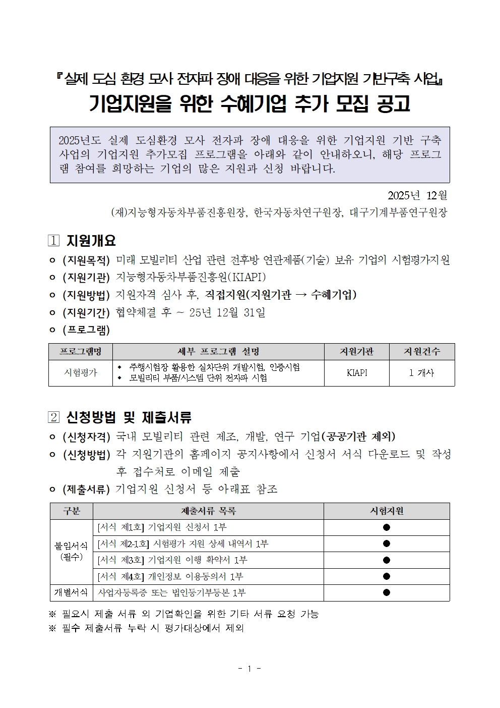 [공고] 2025년「전자파 기업지원 사업」일반기업지원 수혜기업 추가 모집 공고