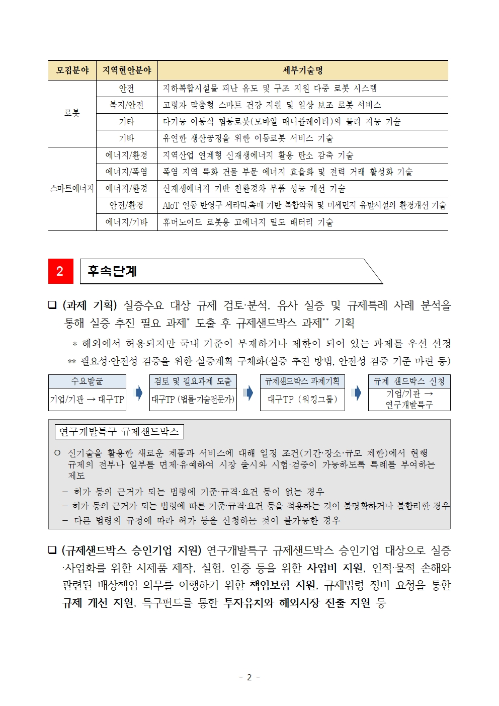 첨부파일 : [붙임1]연구개발특구 특화형 규제샌드박스 실증 수요조사 양식.hwpx (63 kb) [붙임2]작성요령.hwpx (78 kb) [붙임3]기술개요서_5대분야.hwpx (1584 kb)